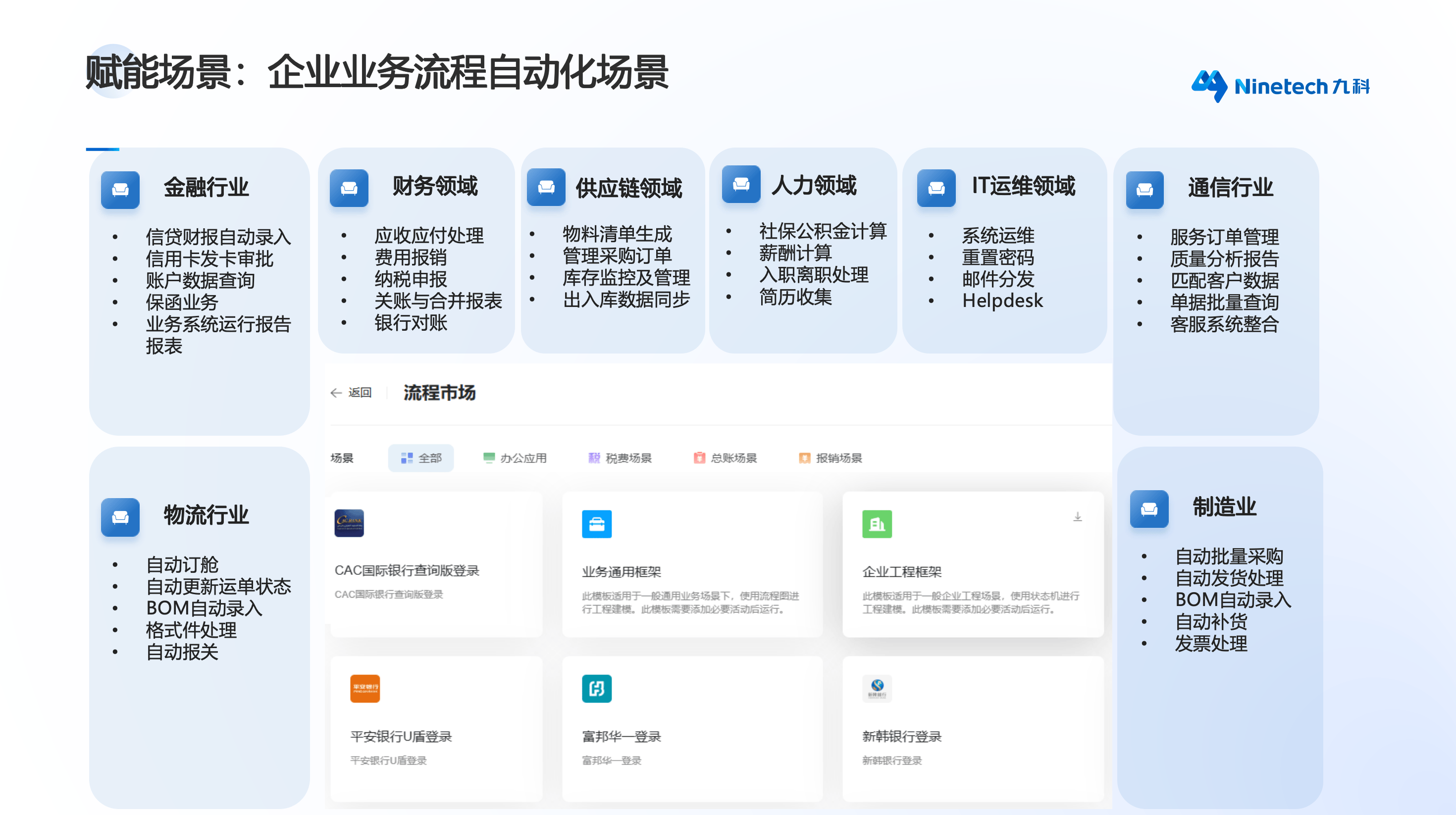 国产 RPA 厂商正在本次合作中厚积薄发,它们凭仗对本土市场奇特需求的深刻洞察、丰硕的产物功能以及杰出的手艺办事支撑,成为市场的从导力量。九科消息做为国内 RPA 行业的领军企业,更是凭仗其先辈的手艺、优良的产物和专业的办事,成为了浩繁央国企的首选。从招商局集团到中邦交通扶植集团,九科消息的 bit-Worker RPA 产物正在这些企业的环节营业流程中阐扬着主要感化,帮力它们实现营业流程的从动化取智能化。其对国产化生态的全面支撑和正在信创中的不变表示,满脚了企业对自从可控的火急需求,成为了企业数字化转型的得力帮手。