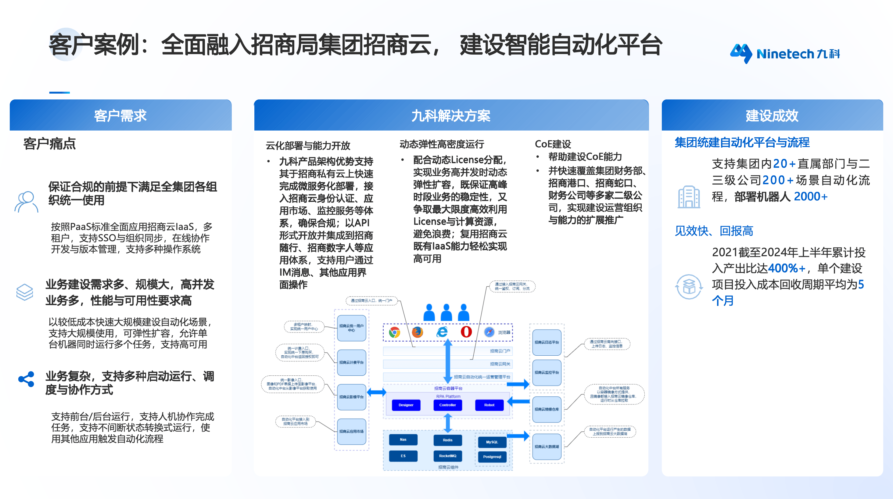 此外,九科消息的 bit-Worker RPA 产物正在央国企中的普遍使用也证了然其靠得住性和平安性。正在招商局集团,bit-Worker RPA 机械人替代人工实现资金系统及金蝶系统的集成,完成从对账单至单个账号对账的从动流转,全流程无需人工干涉,无效节流财政人员正在反复劳动上破费的时间。